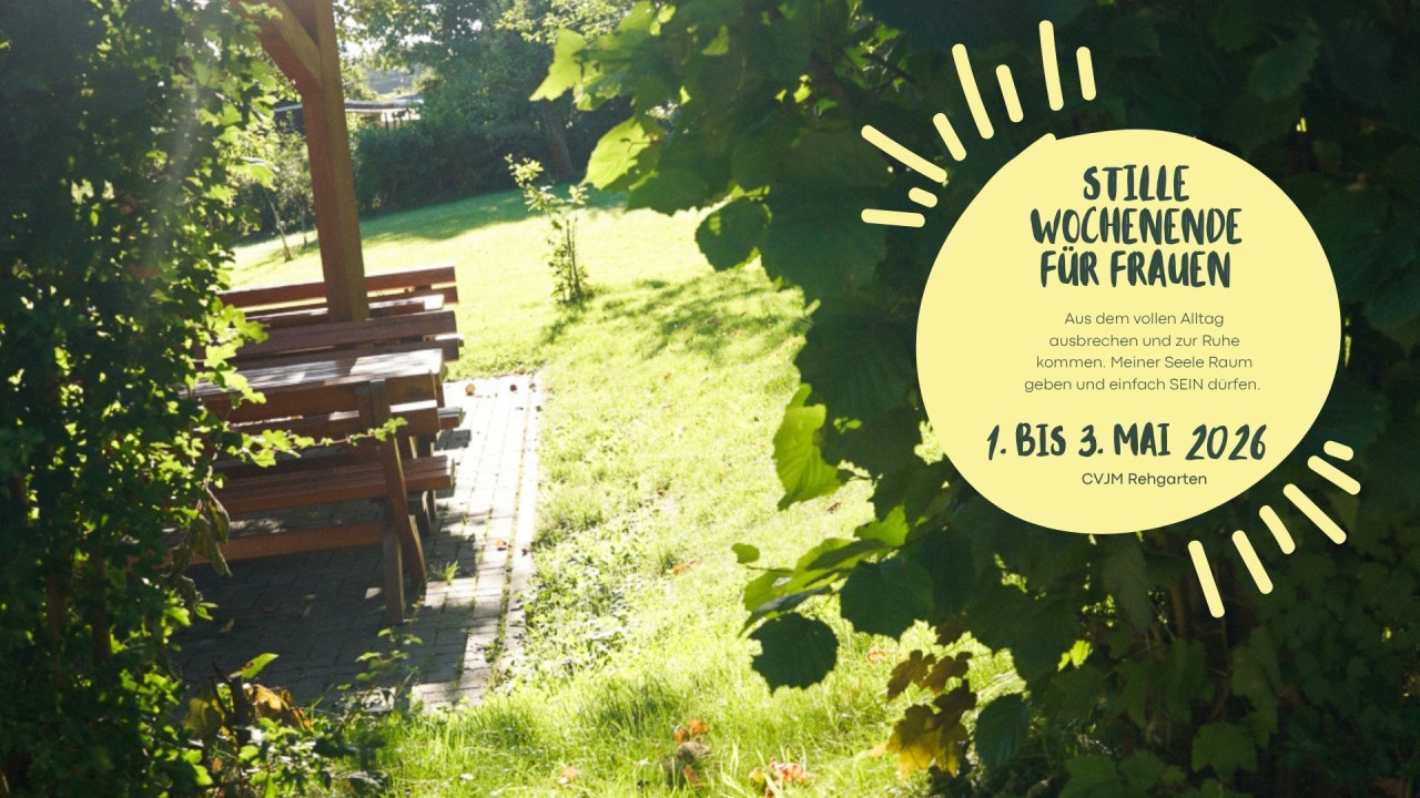 Genau hier setzt unser Stille-Wochenende für Frauen im CVJM Rehgarten an. Vom 1. bis 3. Mai laden wir dich ein, bewusst auszusteigen. Raus aus dem Trubel. Rein in eine Zeit, die deiner Seele guttut. Einfach mal sein ...